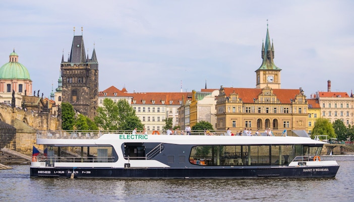 Crociera turistica diurna o serale sul fiume Moldava di un'ora con bevande opzionali | 11:30, 12:00, 12:30, 13:00, 13:30, 14:00, 14:30, 15:00, 15:30, 16:00, 16:30, 17:00, 17:30, 18:00, 18:30, 19:00, 13:00, 13:30, 14:00, 14:30, 15:00, 15:30, 16:00, 17:00, 18:00, 18:00, 19:00, 20:00 | Argine Dvorakovo, Molo 3 (vicino al ponte Čech) | Commento online, guida stampata in 16 lingue, guida mobile interattiva, Wi-Fi gratuito a bordo; Bevande analcoliche, bevande alcoliche o snack opzionali | Prenota ora |